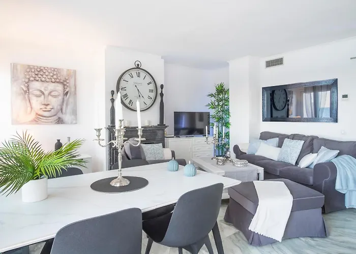Das 100 m² große Apartment Alma'S Dream Estepona bietet Grillanlagen auf einer Terrasse und liegt etwa 5 Fußminuten vom Strand Bahia Dorada entfernt. Das am Strand Apartment liegt in 4 km Entfernung von der Kirche Nuestra Señora de los Remedios.